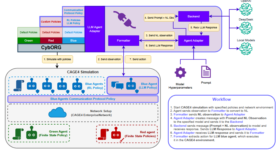 - The paper presents the first integration of LLMs and RL agents in a multi-agent cyber defense setting using CybORG CAGE 4.