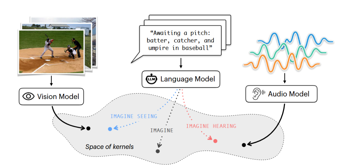 However, under the authors’ framework, if the model is prompted with: “Imagine what it would look like to see [caption],” the LLM generates descriptions focusing on stance, uniforms, and physical positioning. The internal representation of this generation shifts to become mathematically similar to how a vision model (like DINOv2) represents an actual image of a baseball game.