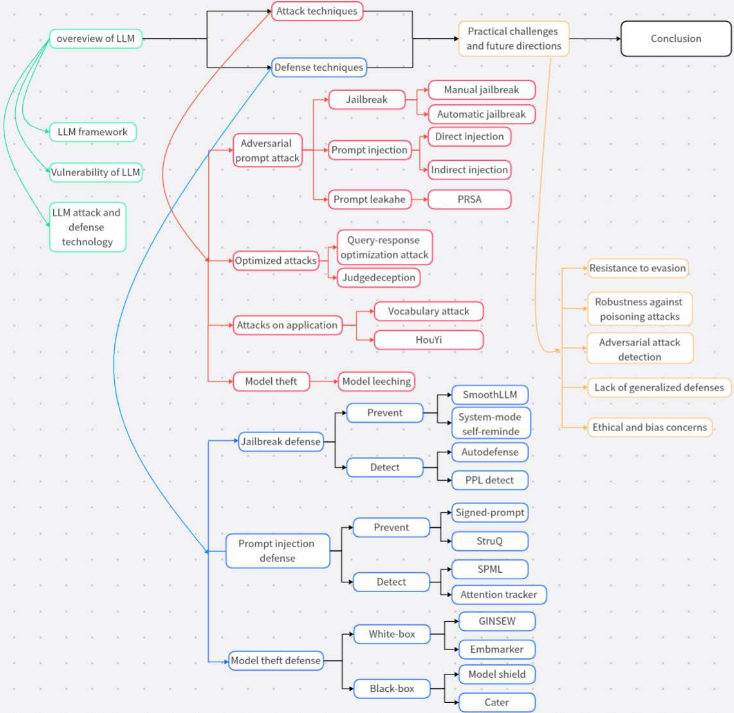Literature Review: Attack and Defense Techniques in Large Language Models: A Survey and New Perspectives