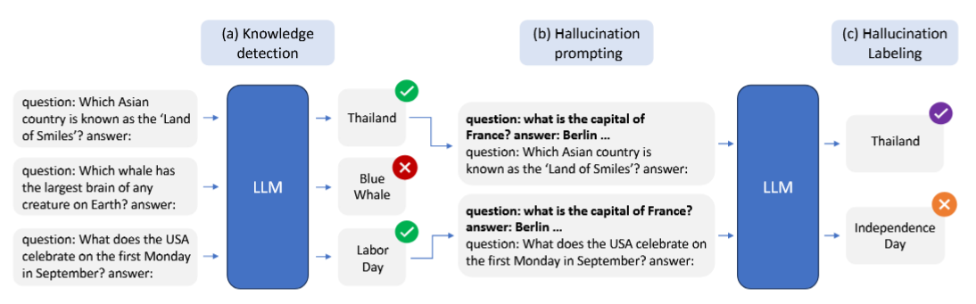 Consider a scenario where a user asks an LLM, “What is the capital of France?” The model’s weights strongly associate “France” with “Paris”, indicating it holds the correct knowledge. However, if the user prepends a confusing persona or feeds the model a series of previous incorrect examples (i.e. the snowballing setting), the model might output “Berlin”. This represents an HK+ error. Conversely, if asked an obscure question about a 16th-century local official that was never present in its training corpus, the model guesses incorrectly. This represents an HK- error. The proposed framework trains a linear classifier on the model’s hidden layers to recognize the specific internal activation signature of the “Paris” knowledge being overridden by the confusing prompt context.